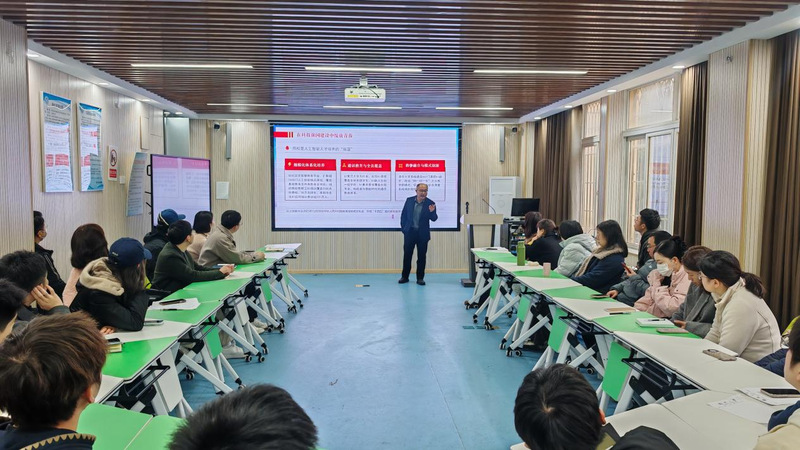 为深入学习贯彻党的二十届四中全会精神,增强师生党员的科技报国使命担当,1月27日,院长助理兼信息工程系系主任徐艺文在地矿楼207为所联系单位的师生党员讲授题为《锚定AI新赛道,勇担强国新使命》的专题党课(思政课)。课上,徐艺文教授围绕科技现代化与中国式现代化的内在联系,由“新质生产力”这一重要论述展开,深入剖析“人工智能+”对经济社会各领域的融合赋能作用,通过解读国家在人工智能科技创新、产业应用、治理体系等方面的部署,阐释人工智能在新一轮科技革命与产业变革中的战略意义。同时,进一步结合信息工程系“十五五”发展规划,做出未来五年系内重点任务与关键指标,涵盖党建引领、学科(专业)建设、教学研究、人才培养、科学研究、社会服务和国际及港澳台交流与合作7个方面。他鼓励青年党员,既要立足专业、深耕技术,也要拓宽视野、跨界融合,在实际教学、科研与社会服务中强化理论武装,提升专业能力,投身科研攻关,弘扬科学家精神,将“十五五”规划的宏伟蓝图转化为生动实践。本次党课(思政课),既是一次对国家战略的深入解读,也是一次“党建促科研、党员勇担当”的思想动员,更是一次激励师生投身科技强国建设、担当民族复兴大任的