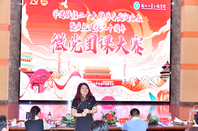 福州大学马克思主义学院舒展老师为大赛作了精彩点评。她对参赛选手的表现予以充分肯定,指出本次微党团课紧密联系学院办学特色、选题多样、生动形象、构思精巧,同时具有很强的感染力,充分体现了至诚学院党团青年通过学习贯彻习近平新时代中国特色社会主义思想和党的二十大精神所展现出新时代中国青年的良好风貌。最后,她还从微党课的知识结构、细节把握等授课技巧为参赛选手进行了指导。