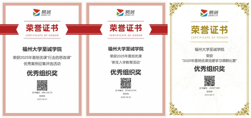 近日,易班网2025年多项活动结果相继揭晓,福州大学至诚学院积极参加,凭借扎实的育人成效和优质的内容创作斩获多项荣誉,充分彰显了学院在网络思政育人领域深耕的不懈努力和显著成效。